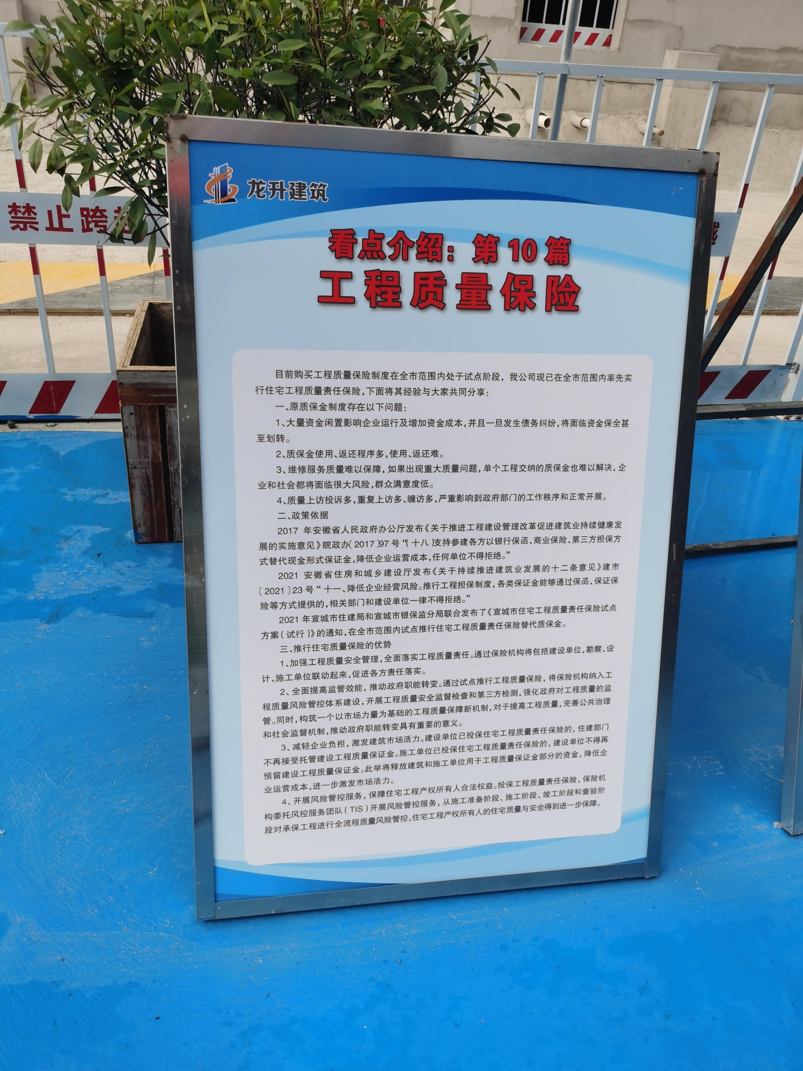 房屋住宅關乎民生福祉。為更好地提高住宅工程質量水平,減少住宅工程質量投訴,維護住宅所有權人的合法權益,國元保險經紀公司積極推動住宅工程質量責任保險項目,在宣城市住建部門的統(tǒng)籌和引導下,在全市范圍內開展住宅工程質量責任保險制度試點工作。一方面,通過保險的形式代替建設工程質量保證金,減輕企業(yè)負擔,激發(fā)建筑市場活力。另一方面,引進TIS風險服務機構,對承保工程進行全流程質量風險管控,進一步保障住宅工程產權所有人合法權益,提高全市住宅工程質量水平。